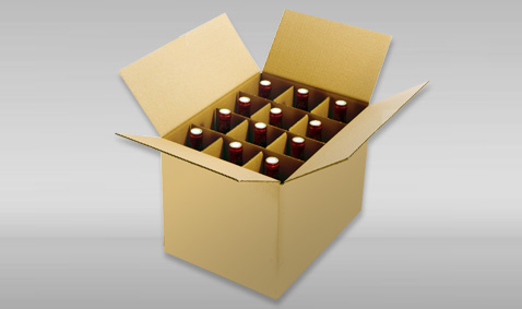 Caixa Modelo Americano disposta verticalmente com divisórias para 6, 8, 12, 16 e 24 garrafas.